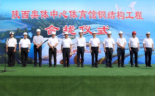 9月27日上午,由陜建集團總承包、集團公司負責承建的陜西奧體中心項目舉行屋面鋼結構合攏儀式。十四運籌委會場館建設部駐會副部長朱昱、省體育局副局長張王平、陜建集團董事章貴金、集團公司董事長李家衛等相關領導出席儀式,儀式由省統建辦主任孫積武主持。